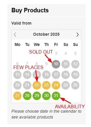 Once the quantity, the date and the time-slot have been selected, the customer will confirm the online booking and receive an order confirmation email with the ticket(s) attached (in pdf).